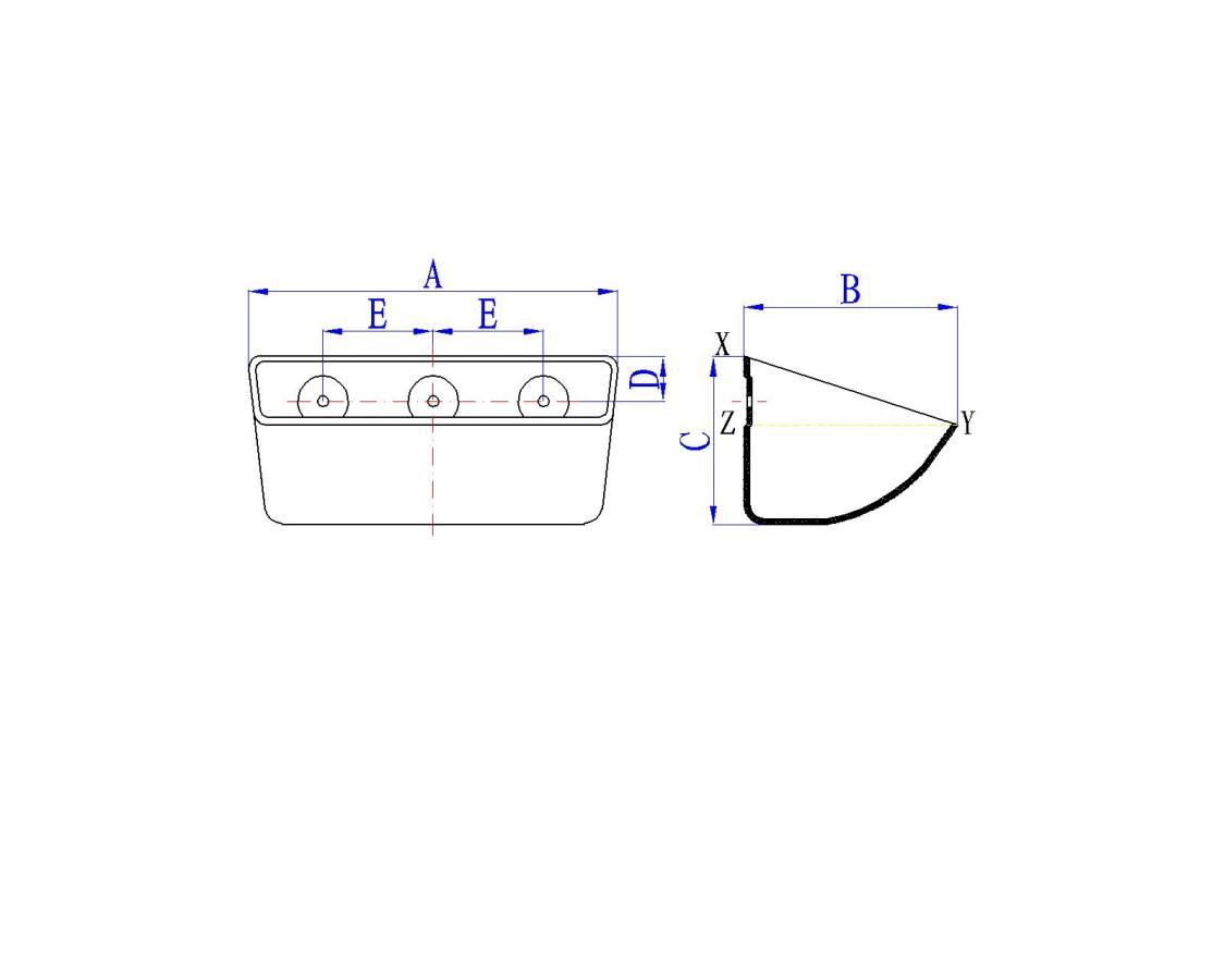 Modelo | Longitud a (mm) | Proj. B (mm) | Profundidad C (mm) | Centro E (mm) | Número de agujeros | diámetro d (mm) | Espesor (mm) | Capacidad (Xy) (L) |