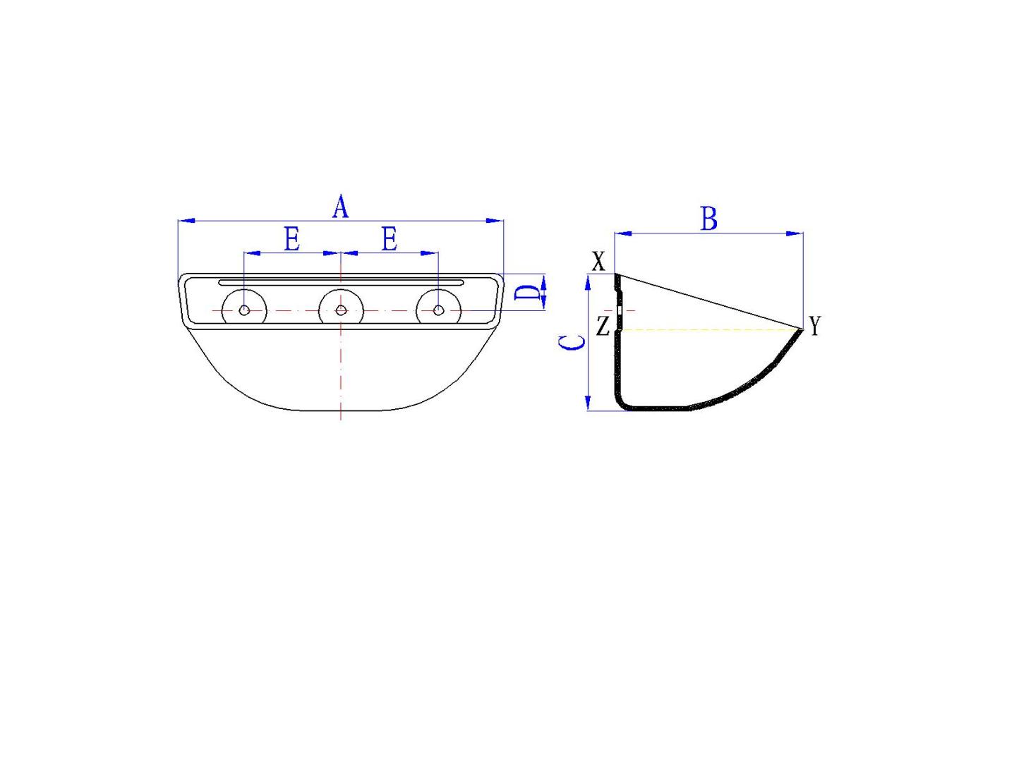 Modelo | Longitud a (mm) | Proj. B (mm) | Profundidad C (mm) | Centro E (mm) | Número de agujeros | diámetro d (mm) | Espesor (mm) | Capacidad (Xy) (L) |